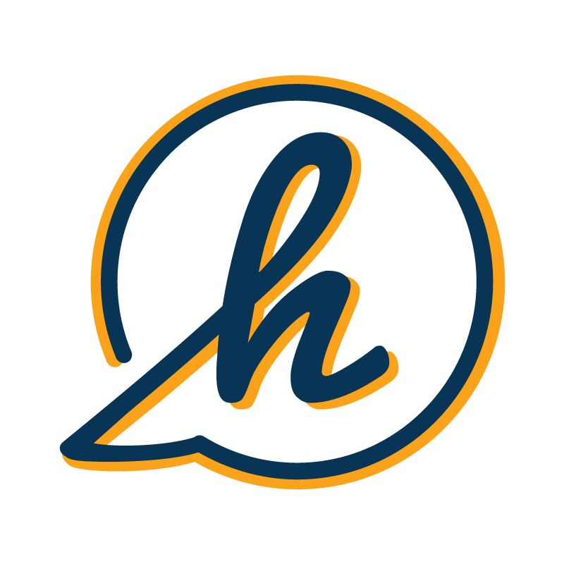Our full color logo consists of the "h" bubble symbol in deep sea & sunrise, and the wordmark in deep sea. It is only used on white or very light backgrounds.